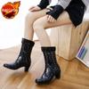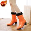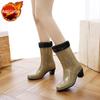 Damen High Heel Regenstiefel Koreanischer Stil Mid Calf Wasserdicht Rutschfest Gummistiefel Outdoor Mode Accessoires