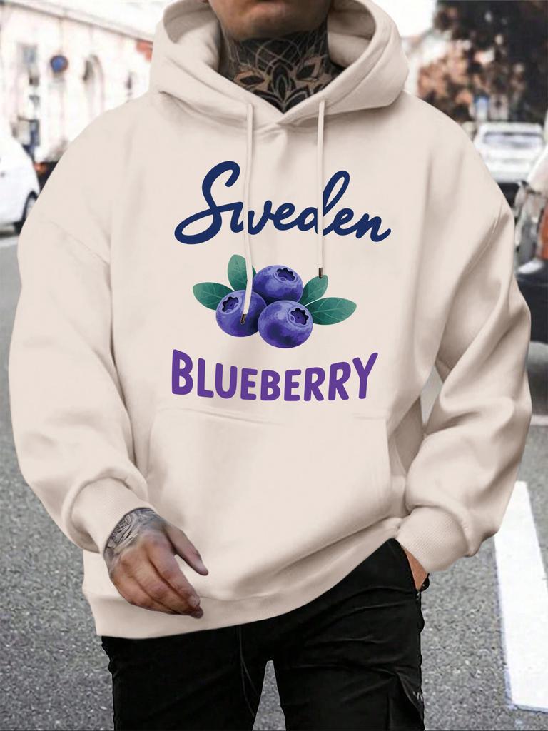 Sweden Blueberry Fresh Fruit Printing Men Hoodie Casual Multicolor Hoody Vintage Pocket Hoodies Comfortable Fleece Man Clothing