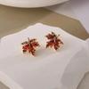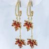 Ohrringe mit rotem Ahornblatt-Quasten und eingelegten roten Strasssteinen - Göttinnen-Stil