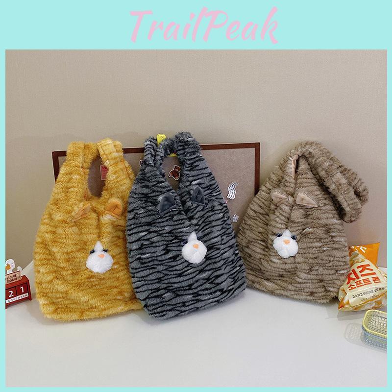 Cat Cute Plush Backpack With Tail Design Tote Bag Suitable For Daily Commuting