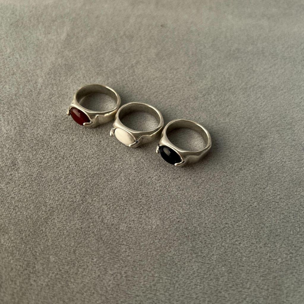 MA* Retro Geschwärztes Silber Rot & Schwarzer Achat Ring-Paar