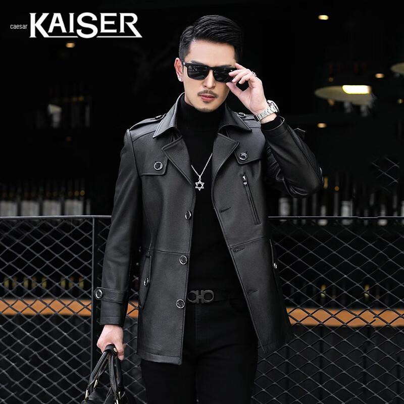 KAISER Men's Mid-Length Cowhide Leather Trench Coat
