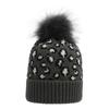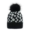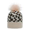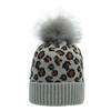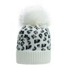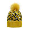 Damen Herbst Winter Leopard Gestrickt Warm Große Wollkugel Pullover Schicke Mütze EMA