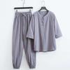 Dieses stilvolle zweiteilige Set ist perfekt für die wärmeren Monate und bietet eine Mischung aus Baumwolle und Leinen für ultimativen Komfort und Atmungsaktivität.. Das Oberteil mit halben Ärmeln und die passende Hose sind im traditionellen chinesischen Stil entworfen, hervorgehoben durch elegante Froschverschlüsse, die einen Hauch von Authentizität und Charme verleihen.. Dieses Set ist ideal für zwanglose Ausflüge oder kulturelle Veranstaltungen und bietet eine einzigartige Mischung aus zeitgenössischem Stil und kulturellem Erbe.