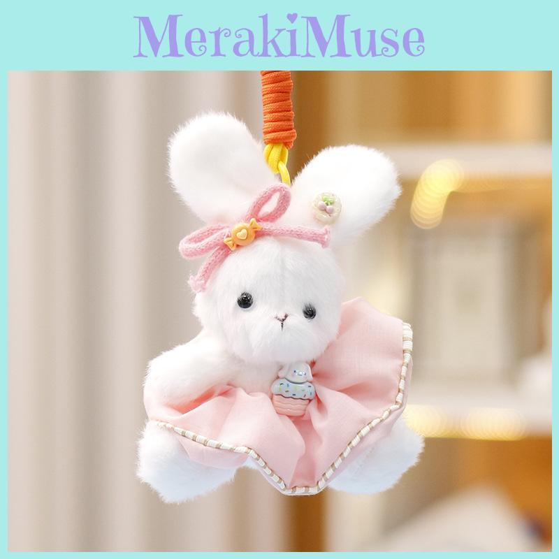 White Bow Skirt Rabbit Plush Toy Pendant Animal Keychain Bag Decoration Gift