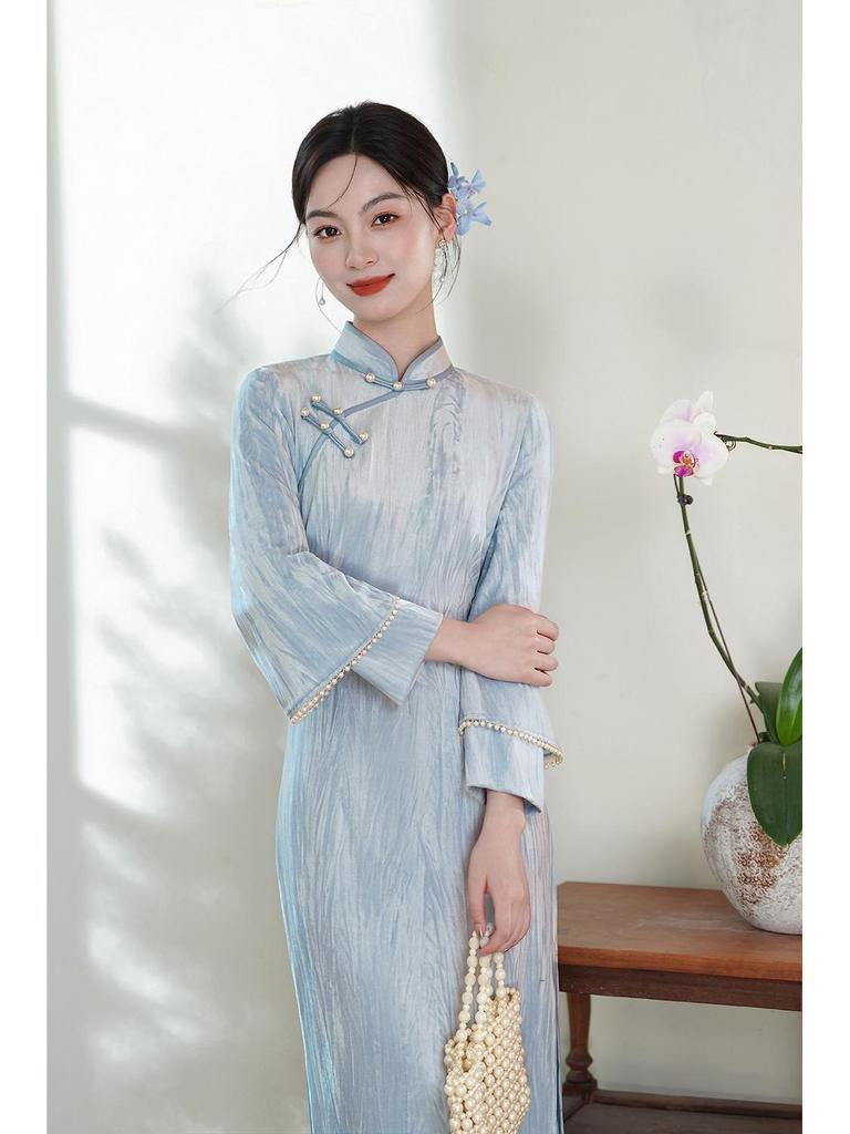 Introducing a stunning Qipao designed for the modern youth, perfect for autumn events. This elegant dress is crafted from soft crushed velvet, offering a luxurious feel, while the polyester material ensures durability and comfort. The Qipao features intricate lace edging, adding a touch of sophistication, and large sleeves for a dramatic flair. Ideal for making a stylish statement, this piece seamlessly blends traditional charm with contemporary fashion trends.