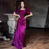 2024 Elegantes Sommer Damen Abendkleid mit eckigem Ausschnitt, Puffärmeln und figurbetonter Silhouette