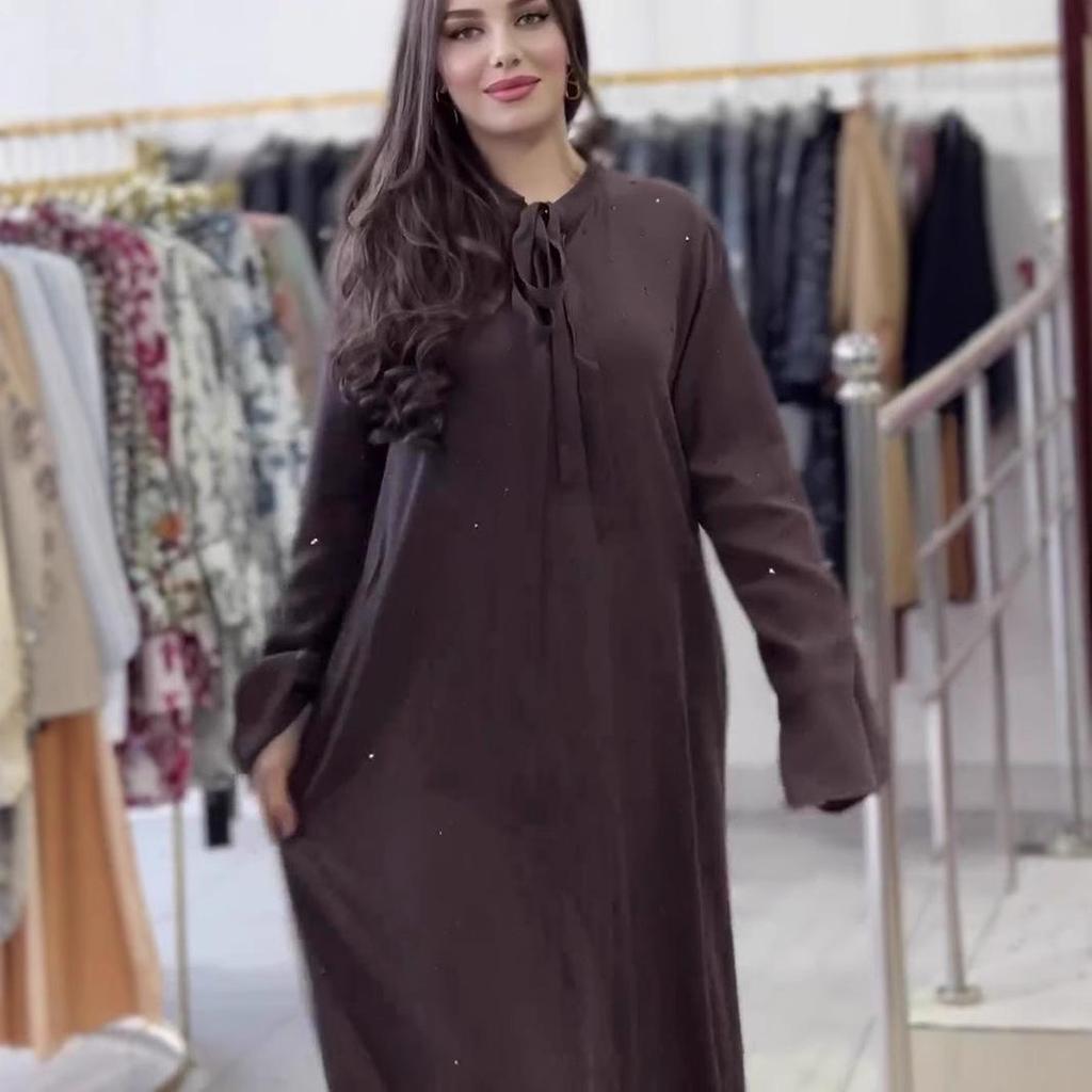 Glitzerndes Langarmkleid mit Rundhalsausschnitt und Bindedetail am Rücken