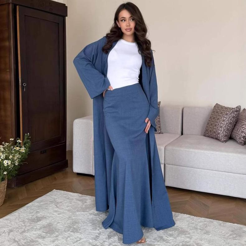 Entdecken Sie das schicke und vielseitige lockere Qi-Robe-Mantel-Set mit einem passenden Midi-Rock mit Hüftwickel für Damen, perfekt für Herbst 2025. Dieses stilvolle Ensemble hat ein einfarbiges Muster und bietet einen eleganten und modernen Look.. Ganz aus strapazierfähigem Polyester gefertigt, gewährleistet es sowohl Komfort als auch Langlebigkeit.. Der sportliche Stil von Mantel und Rock macht ihn zur idealen Wahl für lässige Ausflüge oder einen gemütlichen Tag, wobei er mühelos Mode mit Funktionalität verbindet.. Umarme die Eleganz dieses zeitlosen Sets, das dazu entworfen wurde, deine Herbstgarderobe mühelos aufzuwerten.