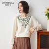 KEMENG BOKA Damen Reiner Kaschmir Laternenärmel Gestickter Strickpullover