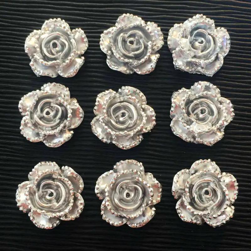 40 STÜCKE 14mm Silber Blume Rose Harz Strass Flatback Cabochon Stein DIY Handy/Schmuck Scrapbooking Zubehör HA353