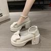 Japanische Mary Jane Schuhe mit Plateau Damen neu Sommer Perlen Schleife Französische hochhackige kleine Lederschuhe Einzelne Schuhe