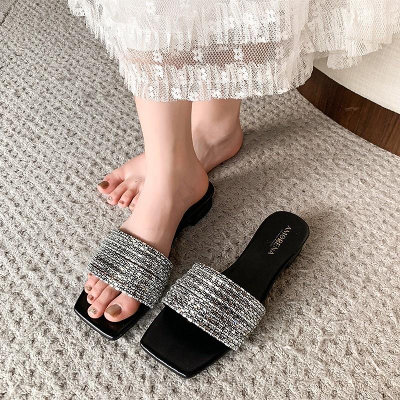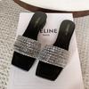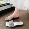 Pantoletten mit Keilabsatz Damen neue offene Keilabsatz coole Pantoletten Strass Oberbekleidung Temperament vielseitig Ein-Wort-Slipper im Sommer 2025