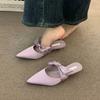 Dünner Absatz Schleife Tasche Kopf Halbschuhe Feenschuhe 2025 Frühling und Sommer Satin Französisch Lila Halbe Platte Einzelne Schuhe