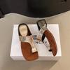 Im Sommer 2025, die neuen coolen Mode-Slipper mit dickem Absatz und Rockabdeckung und Zehensteg, Slipper mit eckiger Spitze