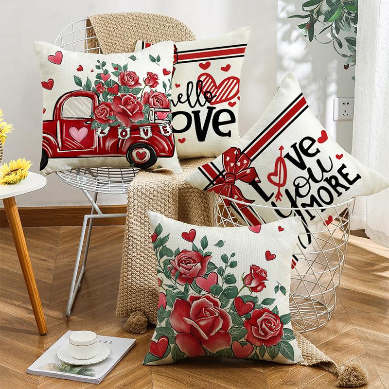 Kissenbezug Valentinstag Kreativ Romantisch Date Druck Liebe Pflanze Blume Party Zuhause Sofa Kissen