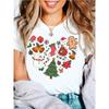 Christmas heart-shaped printed T-shirt holiday design, gingerbread women's candy cane and snowflake soft round neck casual top