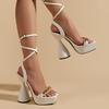 Metall Dekoration Schnalle Frauen Schuhe Neue Blockabsatz Sandalen Sommer Plattform High Heels Nachtclub
