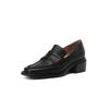 Fashion Echtes Leder Slip -On Damenschuhe Casual Loafers Square Toe Einfache Schuhe Dicker Absatz Schuhe Frau Zapatos De Mujer