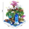 Kreativer Pfirsichblütenteich Sakura Schloss Baumhaus Ansicht Set Stadt DIY Modell Bausteine Ziegel Spielzeug für Kinder Erwachsene Geschenk