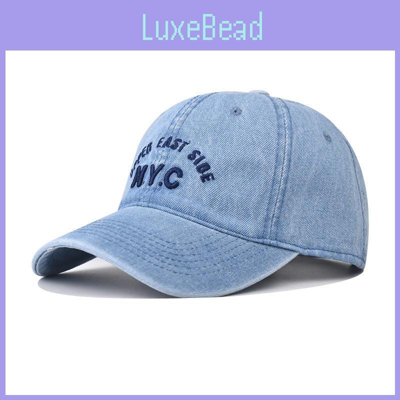 This adjustable baseball cap features distressed denim fabric with embroidered NYC lettering, combining casual style with functional sun protection. Made of durable cotton denim, it measures approximately 7 inches diameter with a curved brim for a classic look. Ideal for daily wear in summer, it resists wind and provides shade. Wipe clean with a damp cloth for maintenance.