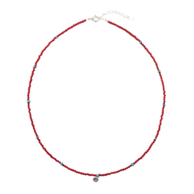 FINDELISE 925 Silver Coral Arizona Turquoise Necklace