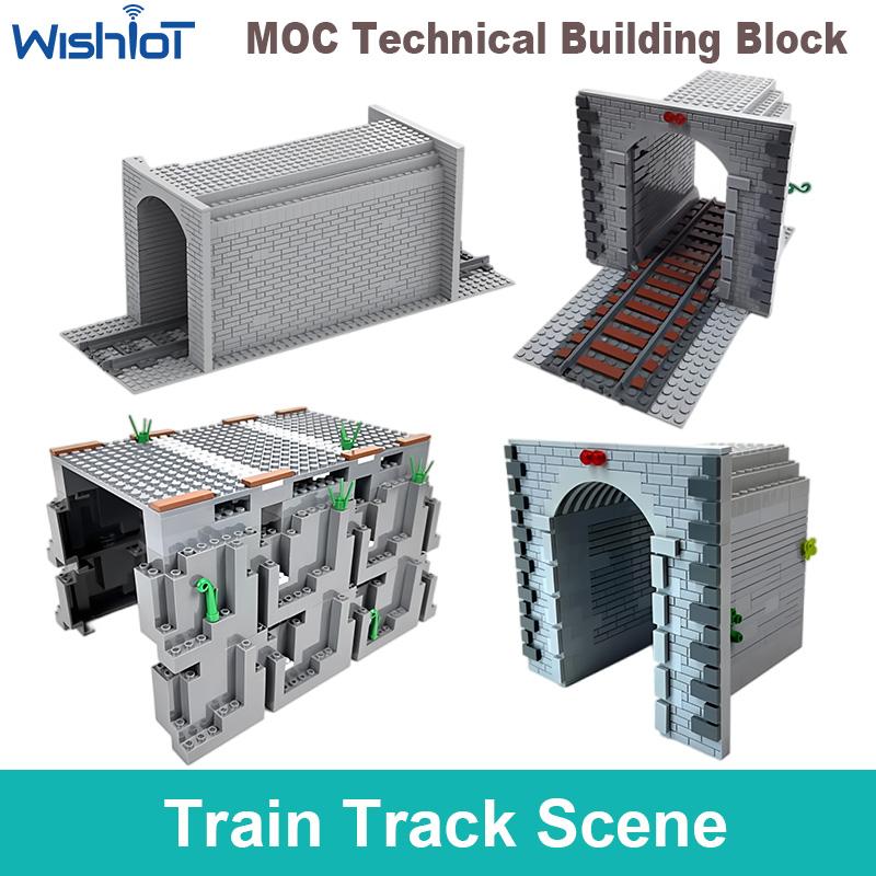Zugstreckenszene MOC Baustein Höhle Tunnel Stadt Simulation Zug Transport Eisenbahn Ziegel Montage Spielzeug Geschenk für Kinder