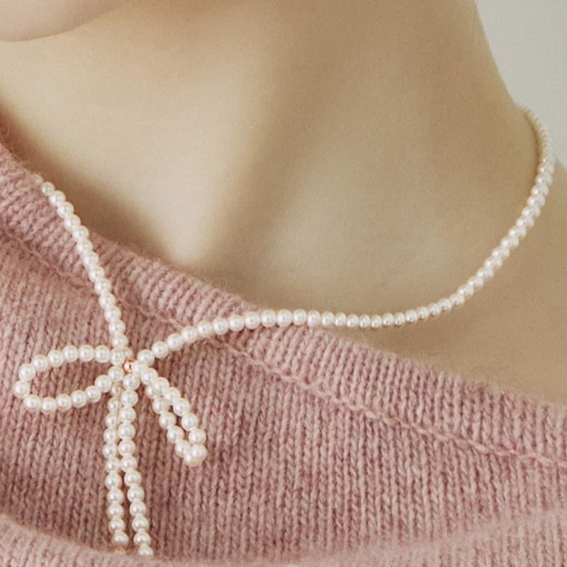 J.ESTINA Mariel Ribbon Pearl Bead Necklace (JJLJNI4BS356SR420)