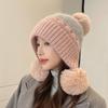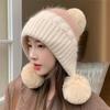 Perlenverzierte Haubenmützen Ohrenschutz Damen Beanies Wintermütze mit Bommel Herbst Winter