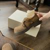 Ganze Rindsleder Traube Mutter Doppelschnalle mit runder Spitze ein Pedal Retro Britischer Stil Großkopf Lederschuhe Damen Echtleder Slipper Damen