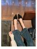 Schafsleder-Version~ Französische quadratische Schnalle Leder weiche Sohle Mary Jane Einzelschuhe Damen schöne kleine Absätze flache spitze Schuhe Damenschuhe