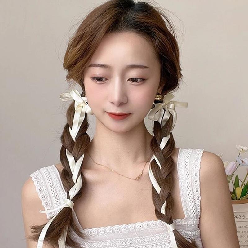 2M Geflochtenes Band Haarband Band Seidenhaargummi Stirnband Weibliche Schleife Twist Haarseil Pferdeschwanzhalter Haarschmuck
