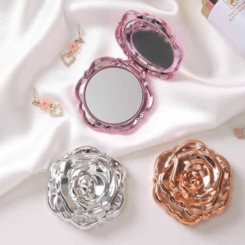 1 Stück tragbarer Mini-Spiegel Retro Rose Blume Kleiner Taschen-Kosmetikspiegel Doppelseitiger Handspiegel Kompaktes Kosmetik-Schönheitswerkzeug