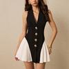 Europäisches und amerikanisches Sommer-Retro-Feminin-High-Street-Patchwork-Knopf-Kontrast-Ärmelloses Plissee-Kleid