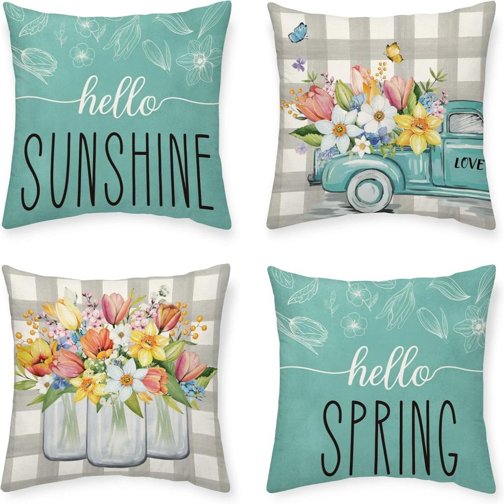 Frühlings- und Sommerblumen, Blumenkunst, Leinenkissenbezüge, Autositze, Lendenkissen, Kissen