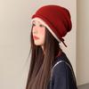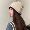 Drawstring Rolled Edge Woolen Hat for Women High End Striped Pile Hat Autumn and Winter Versatile Casual Warm Knitted Hat Baotou Hat