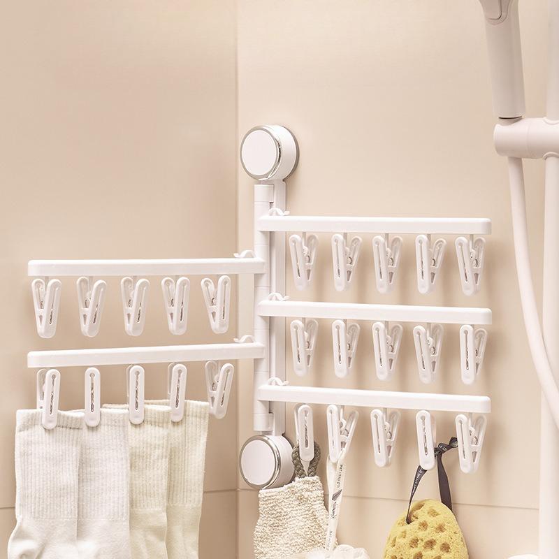 Saugknopf Faltbarer Wäscheständer, Aufbewahrungsregal, Bohrfreier Kleiderständer, Haushalts-Socken, Balkon-Wäscheständer