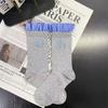 Female Spring and Autumn Personality Trend Blue Check Pattern Lace Puppy Embroidery in The Tube Pile Socks