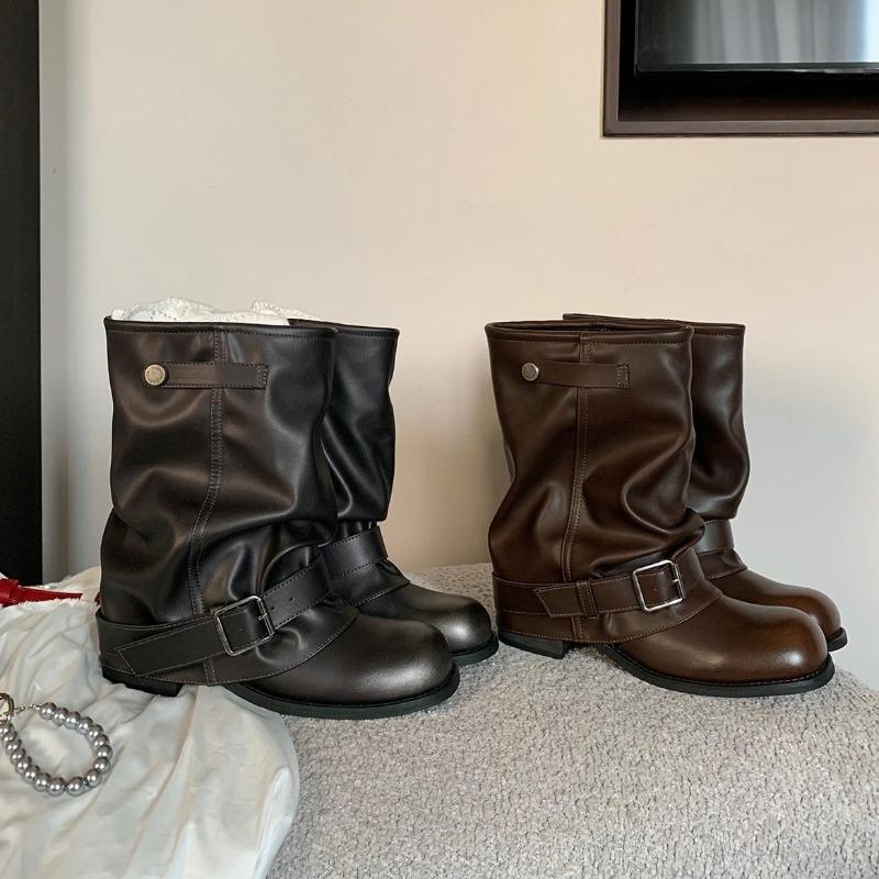 Studiolee Ödlandwind dicker Boden erhöhend Weite großer Schaftumfang Stapelstiefel Western-Kurzstiefel Damen Herbst und Winter