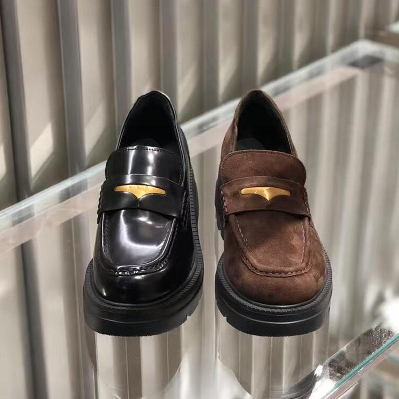 Rindslederversion~ Britischer Stil runde Spitze Einzelne Schuhe dicker Absatz dicke Sohle Loafer kleine Lederschuhe Damen faul ein Pedal Doudou Schuhe Damen