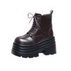 Neue Damen High Platform Stiefel Gothic Leder Punk Schuhe Weibliche Knöchel Kurze Kampfstiefel 10CM Keilabsätze Klobige Motorradstiefel
