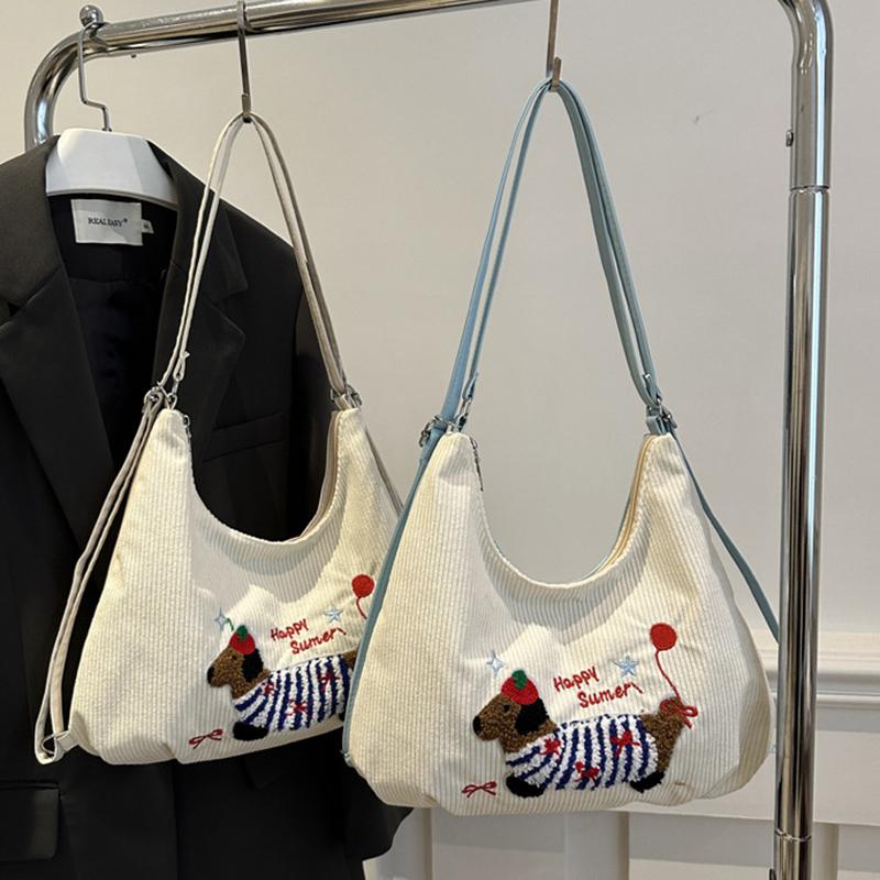 Damen Cord Tragetasche mit großer Kapazität Mode Dackel Niedlich Reißverschluss Schulter Umhängetasche für Arbeit oder Reise CLE