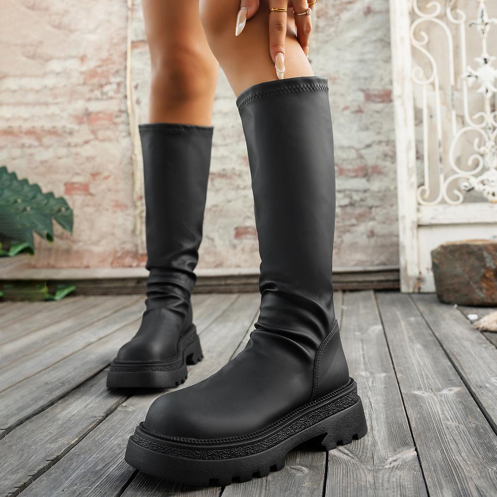 Stiefel mit dicker Sohle, aber kniehoch, Kinder 2025 Herbst und Winter neue Mode-Stiefel, plissierte Stiefel zum Stapeln, hochelastische Damenstiefel