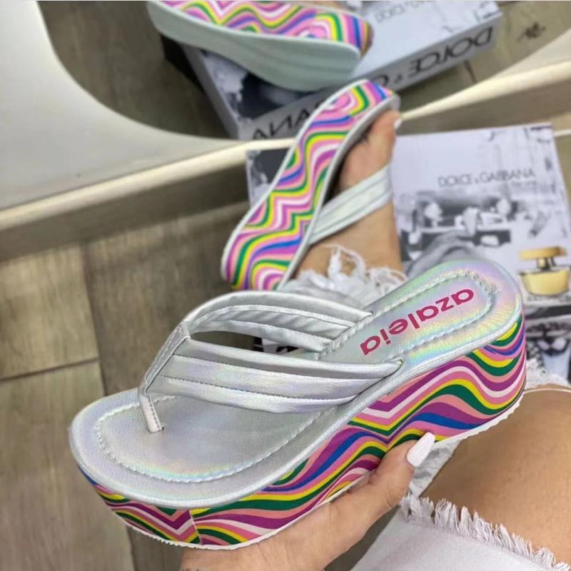 Damen Keilabsatz Plateau Hausschuhe 2025 Sommer Mode Farbe Dicke Sohle Zehentrenner Schuhe Damen Luxus Sandalen