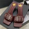 Eilyken Design Stil Schnallenriemen Quadratische Zehenpartie Damen Hausschuhe Niedrige Absätze Partykleid Pantoletten Sommersandalen