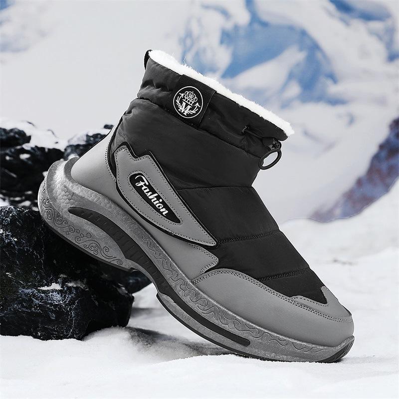 Nordöstliche Schneestiefel Herren Winter Freizeit Outdoor Kältefest, gefüttert und verdickt Pelz integriert wasserdicht Daune warm Baumwollschuhe
