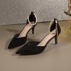 Französische Wildleder Stiletto Mary Jane Schuhe mit Perlenschnalle für Damen 2025 Neu Sommer Elegant Kleid Party Geschlossene Zehen Hohe Absätze Übergröße