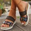 Modische Keilsandalen mit hohlem Webmuster für Damen 2025 Sommer Print Plateau-Slipper Frau Dicke Sohle Rutschfest Lässige Sandalias Mujer