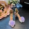 Modische Top-Hochzeitsschuhe, rosa High Heels, offene dicke Absätze, neue Sandalen 2025, Füße mit Blumenstickerei, nackte Riemen, Hochzeitsschuhe