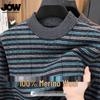 JOW Herren Verdickter Kontrastgestreifter Reiner Wolle Rollkragenpullover